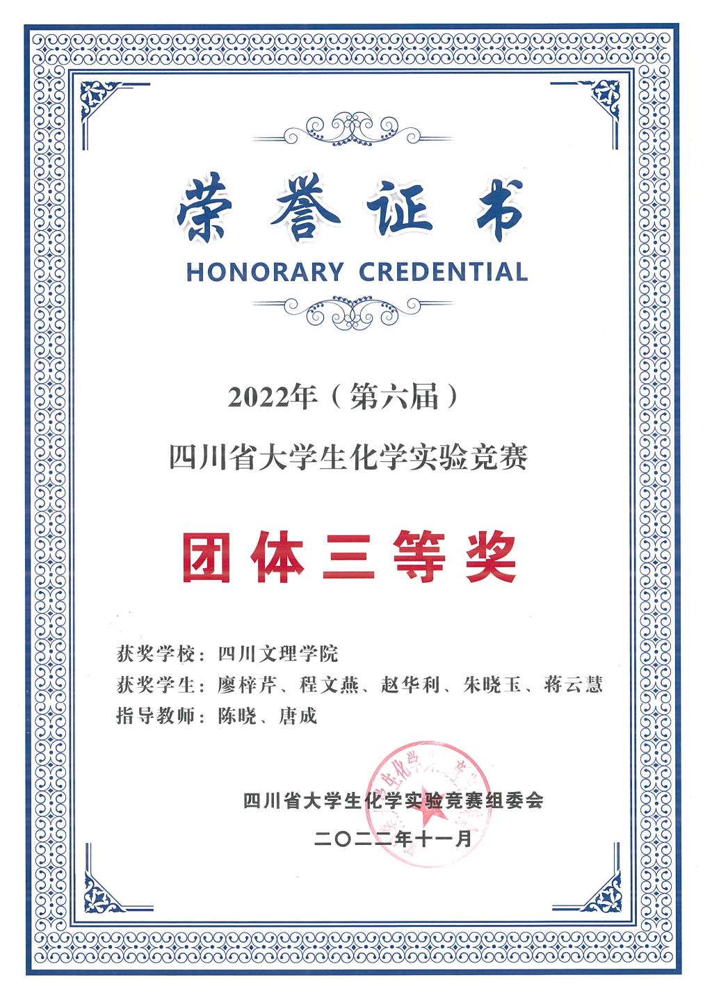 2022年第六届四川省老员工化学实验竞赛 |