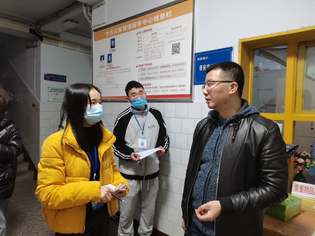 在寝室查访中,潘维副书记从小事出发,热切关心同学们的到校情况,细心询问同学们的相关问题。查访中,潘维副书记叮嘱大一同学要懂得珍惜在大学里的时光,认真学习,如果遇到问题要向辅导员反映,以便得到及时解决。潘维副书记还提醒同学们一定要注意用电安全,小心电脑和自购饮水机等电器摆放的危险。同时为营造宿舍美好环境,同学们应多多注重宿舍的卫生清洁。对于全面升级的热水和直饮水设备,潘维副书记认真倾听了同学们的意见和建议。最后他提出,劳生部在查寝方面应完善相应的评分标准和公告优秀寝室等措施。