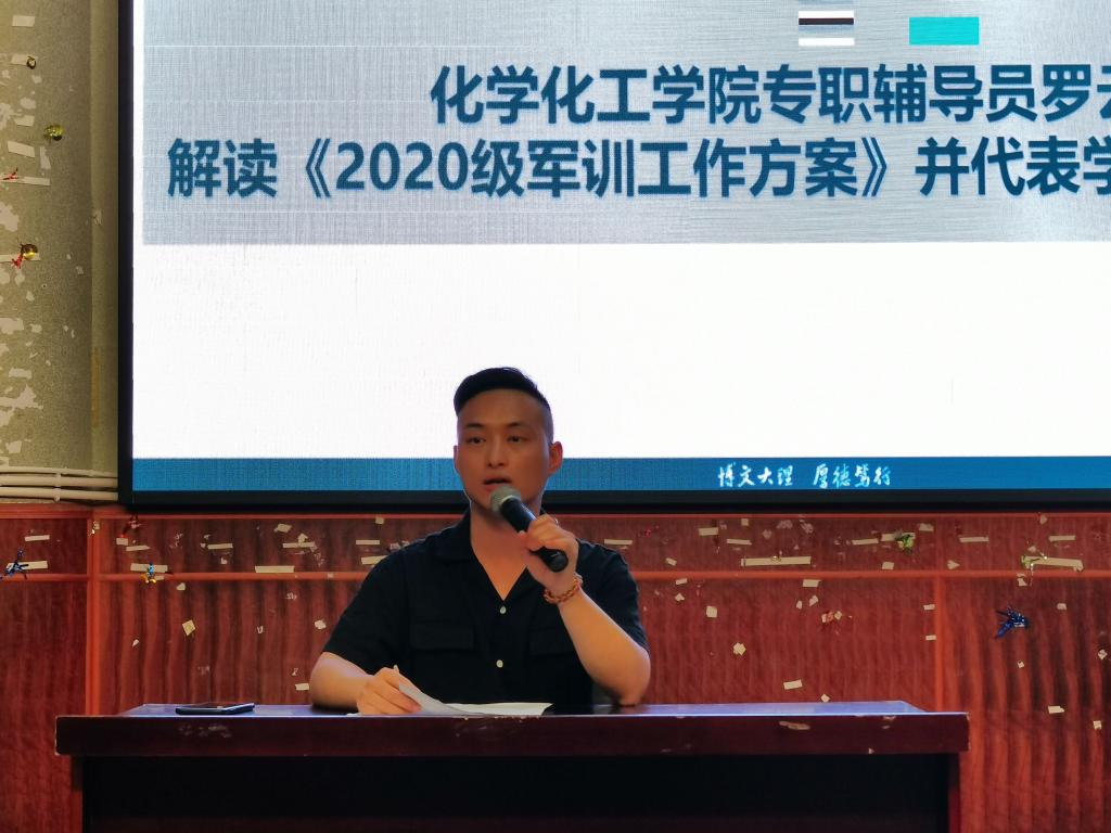 为保证2019级化工学子军训顺利举行,6月14日晚7点化学​365英国上市集团于南坝校区学术报告厅开展军训动员大会。思想政治辅导员罗云主持会议,2019级全体员工参加军训动员大会。