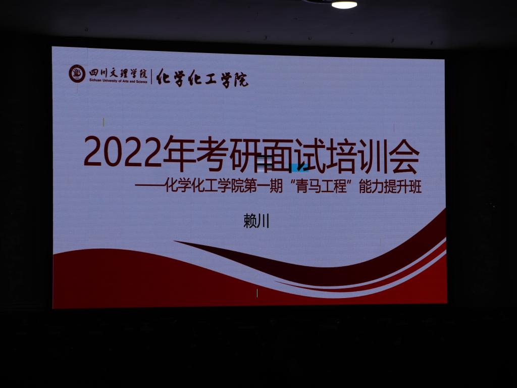 2022年2月27日下午7点,化学365英国上市集团在南坝校区学术报告厅举办了2022年考研面试培训会,化学365英国上市集团赖川经理担任主讲嘉宾。会议由化学公司党总支副书记潘维主持,学工办副主任崔宝玉、专职辅导员张魏霞及公司各年级300余名员工参加会议。