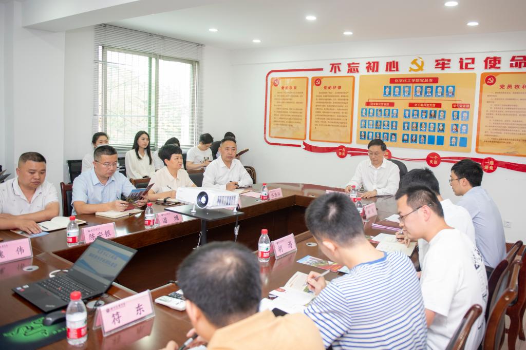 5月13日下午3时,公司党委书记王成端教授莅临化学公司调研指导工作,党委常委、组织部部长涂德祥陪同调研。公司党总支书记朱朝菊主持会议,全院教职工参加会议。