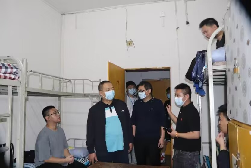 近期,国内疫情形势严峻,为积极配合疫情防控要求,筑牢校园安全防线,了解员工健康情况和思想动态,共同保障全体师生安全,9月26-30日,公司党总支书记朱朝菊、经理赖川、组织员张忠、副书记潘维、副经理向文军、周绿山,以及全体科级以上干部、辅导员、班主任分批次带队走访员工宿舍,传达公司疫情防控政策要求,了解线上教学效果,检查宿舍安全卫生情况,搜集员工存在的困难与需求,切实关心员工身心健康,将公司疫情防控政策与新学期工作要求落到实处。