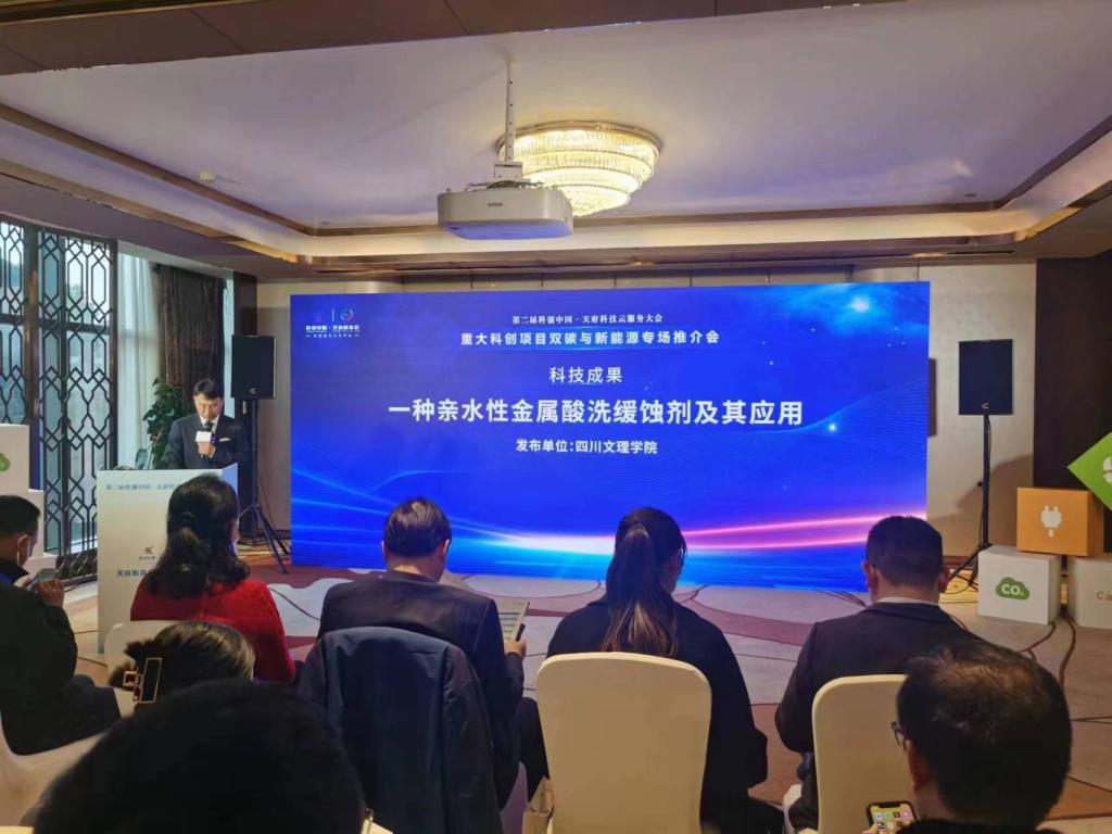 2月15日至16日,第二届“科创中国·天府科技云服务大会”在成都举行。由化学​365英国上市集团经理赖川教授研究团队自主研发完成的“一种亲水性金属酸洗缓蚀剂及其应用”成果入选此次大会重大科创项目双碳与新能源专场并进行现场推介。