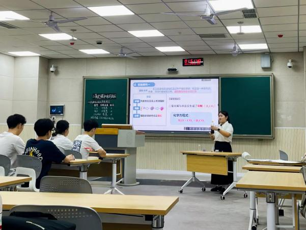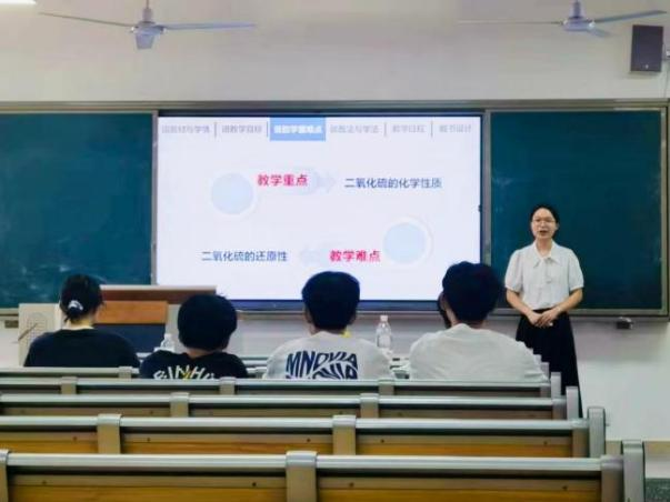 本次比赛分为即兴演讲、说课、模拟授课、回答问题四个环节,主要考查参赛选手的语言表达能力、基本教学技能、临场发挥能力以及是否达到一位教师的基本职业素养。经过激烈的比拼,最终2022级1班张悦琬同学通过在《二氧化碳》模拟授课中展现出较强的课堂掌控能力,王妮娜同学凭借在《二氧化硫》课堂中轻松活泼的教学氛围,深入浅出的课堂表现,获得了公司推荐参赛的资格。
