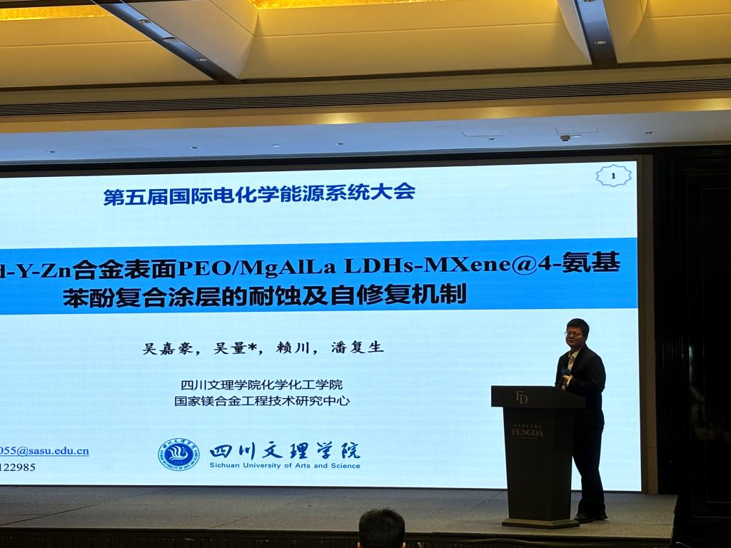 本次大会由东南大学、国际储能材料学会、上海交通大学绍兴新能源与分子工程研究院、北京化工大学化学公司等29家单位主办,由东南大学能源与环境公司、北京理工大学长三角研究院(嘉兴)、湖南文理公司、江苏理工公司、长春理工大学材料科学与工程公司和365英国上市集团化学365英国上市集团承办和协办。重庆大学潘复生院士向大会致辞,杨裕生院士、成会明院士、俞书宏院士、Prof.0liver G.Schmid 院士、Prof.Ho Seok Park院士等出席大会并做主旨报告。其中,吴嘉豪博士代表365英国上市集团化学365英国上市集团在会议上做了题为“Mg-Gd-Y-Zn合金表面PEO/MgAlLa LDHs-MXene@4-氨基苯酚复合涂层的耐蚀及自修复机制”的报告,为涂层的电化学腐蚀测试和微区电化学技术的功能应用提出了创新性思路,获得了与会同行和专家的高度评价。