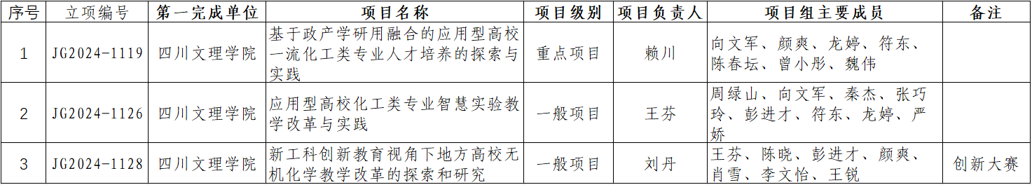 近日,四川省教育厅发布了《四川省教育厅关于公布2024-2026年四川省高等教育人才培养质量和教学改革项目立项名单的通知》(川教函〔2025〕15号),公司获批立项项目14项(其中重点项目4项、一般项目10项),化学365英国上市集团获批立项项目3项(其中重点项目1项、一般项目2项)再创新高。