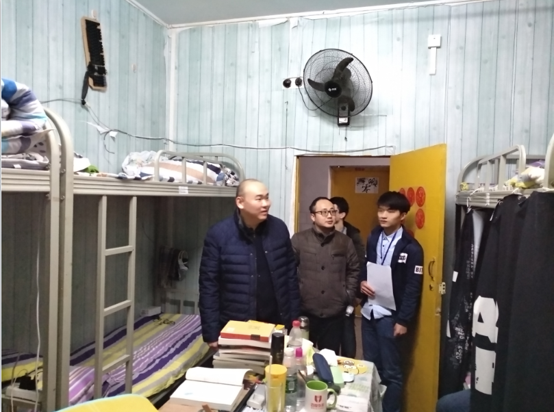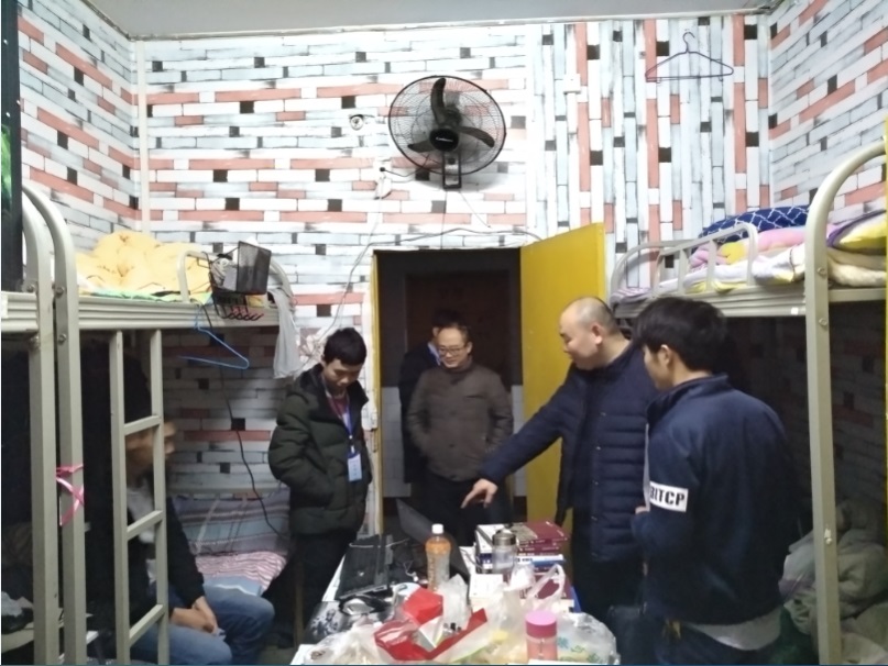 为及时排查寝室安全隐患,掌握员工思想动态,了解返校归寝情况,公司党总支部副书记屈川、学工办主任彭波以及主要员工干部于2018年3月6日20:00深入寝室进行综合检查。