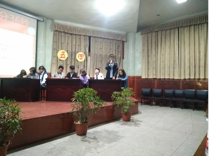 经过初赛的选拔,来自2017级的五支代表队进入了决赛。比赛分为必答、选答和主观问答三个环节,围绕着十九大报告、习近平新时代中国特色社会主义思想、五四运动等内容展开。必答题中选择题和判断题由五个组轮流作答,而选答题和主观问答题根据当前总分高低来排列作答顺序,依次选择关于军事、环境、民生等七个方面的题型。主观问答,则由评委根据选手表现进行打分。比赛中,参赛选手沉着应对、密切配合,分秒必争,以饱满的精神状态,积极踊跃的回答每一道题,展现出了昂扬的斗志。比赛在主观问题环节达到了高潮。面对开放式的问题,在短的时间内,选手们周密思考,充分讨论,结合党的理论知识和对国家、社会、生活的感悟,认真作答,赢得了观众阵阵掌声。最终,经过紧张激烈的角逐,来自2017级4班的第四组代表队以206的高分获得了本次知识竞赛的第一名。