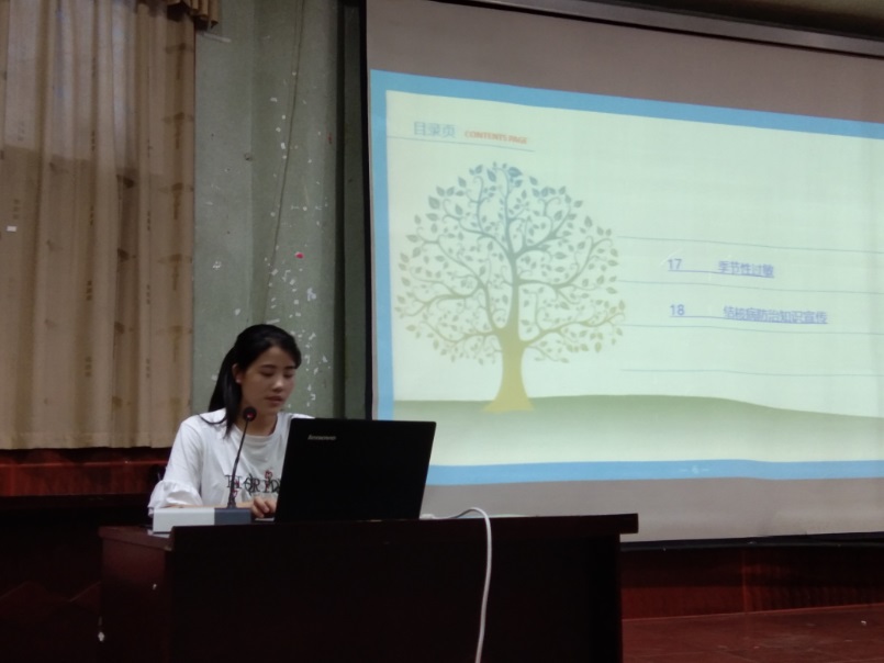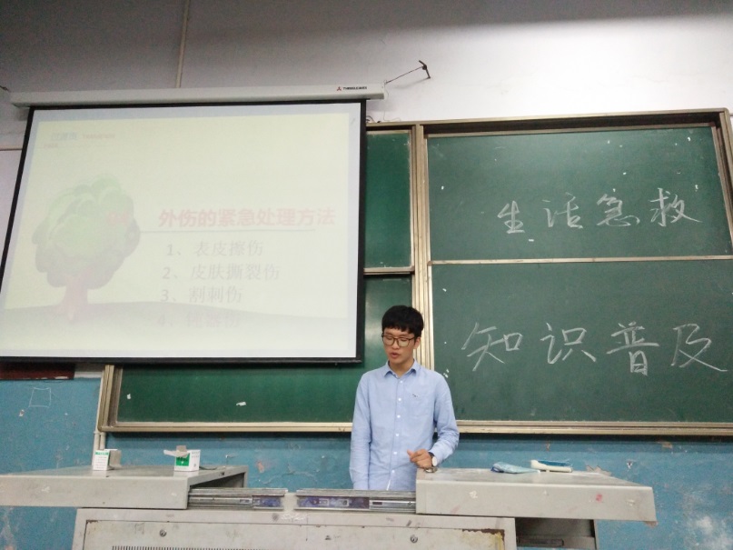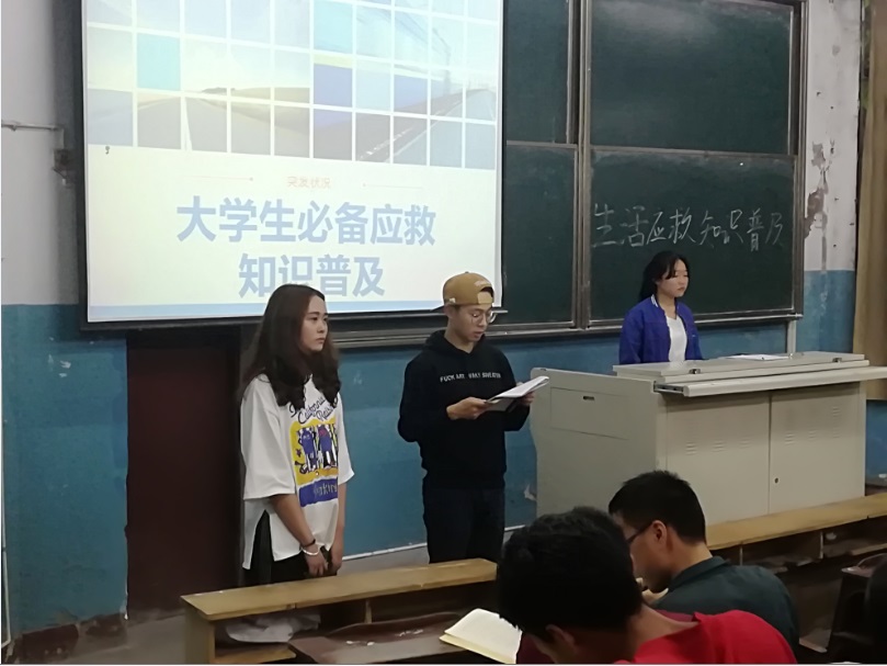 本次应急自救技能培训内容涉及用电安全、地震逃生、火灾自救等灾难应急,中暑、流行性感冒预防、咳嗽、肺结核、季节性过敏、低血糖等疾病预防,鼻出血、异常打嗝、牙痛、脚踝扭伤、晒伤、异物入眼等突发健康状况的处理,心肺复苏、人工呼吸等救治方法的普及。在2个多小时的培训时间里,主持人通过文字、图片、视频、现场示范等手段,生动形象、浅显易懂地给在场的同学讲解了所有培训内容。