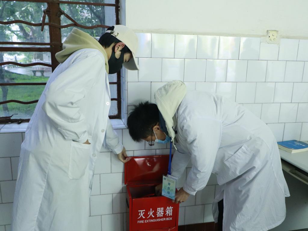 在走访实验室和宿舍过程中,走访人员对重点核查消防设施设备是否完善,安全楼梯、疏散出口及疏散楼梯是否通畅,消防应急照明,疏散指示标志,灭火器是否完好有效并定期进行维护保养,防火门是否存在锁闭现象等方面问题,确保消防设备遇到突发情况时的正常使用。进一步增强了大家的安全防患意识。