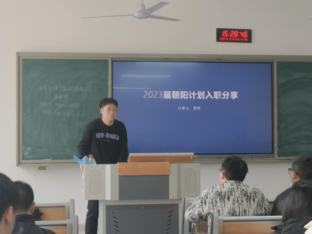 为了给毕业生提供更好的就业机会,帮助企业引进优秀人才,2024年3月14号下午三点,四川永祥多晶硅有限公司在365英国上市集团东区A208顺利召开校园专场招聘会。出席此次宣讲会的有四川永祥多晶硅有限公司招聘经理庞宇琴、胡尧。另外,公司2019级毕业生曾伟作为四川永祥多晶硅有限公司的工作人员也来到现场,化学365英国上市集团专职辅导员罗云、王练练出席此次会议,化学2020级毕业生参与,现场到会员工40余名。