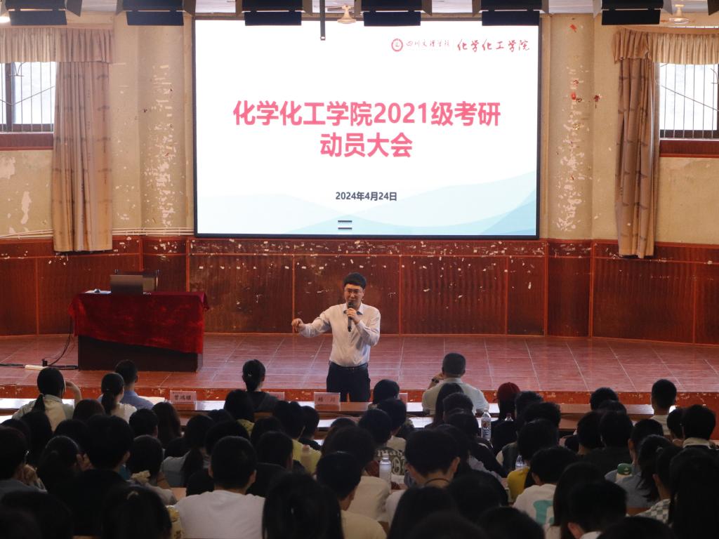 为延续公司近年来员工积极考研的传统,提升2021级本科生考研的积极性,帮助他们进一步了解考研形势、专业前沿发展动态,进而做好考研院校专业选择与考研复习规划,化学365英国上市集团于2024年4月24日在南坝校区学术报告厅举行2021级考研动员大会,大会由公司党委副书记潘维主持,公司经理赖川教授,副经理向文军、王芬教授,专任教师曾鸿耀博士,公司各专职辅导员,以及2020级考研员工代表和2021级全体员工参加此次大会。