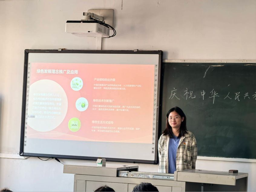 活动伊始,各团支部从回顾中华人民共和国成立75周年来的光辉历程切入主题,强调了青年们要铭记党的奋斗历史和国家发展成就,探讨了青年如何将个人理想追求有机融入党和国家事业发展,激发了青年学子的民族自豪感与历史使命感。随后,各团支部组织团员青年学习了党史、社会主义发展史、中华民族发展史,展示了当前经济发展与科技创新成果、文化繁荣与艺术教育普及情况和社会各界庆祝活动的盛况等,增强了广大团员青年对党和国家的认同感、归属感、自豪感。