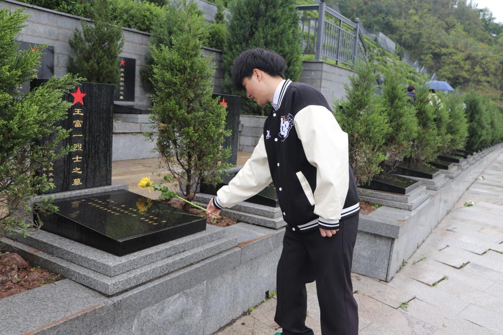 活动伊始,全体党员同志在庄严肃穆的烈士纪念碑前列队肃立,在凝重的氛围中集体默哀并鞠躬致敬,深切缅怀革命英烈的丰功伟绩。随后,党员同志们及青年志愿者分工协作,细致清理陵园内的杂草和垃圾,擦试烈士纪念碑,清扫道路上的落叶和杂物,每一个动作都饱含着对先烈的敬重。完成清扫后,全体党员同志怀着崇敬之情,向烈士纪念碑敬献鲜花。每一朵鲜花都承载着党员们对先烈的感恩与敬仰。大家依次上前,轻轻将花束摆放在纪念碑前,并鞠躬致敬,深切缅怀先烈们为国家和人民所做出的巨大牺牲。