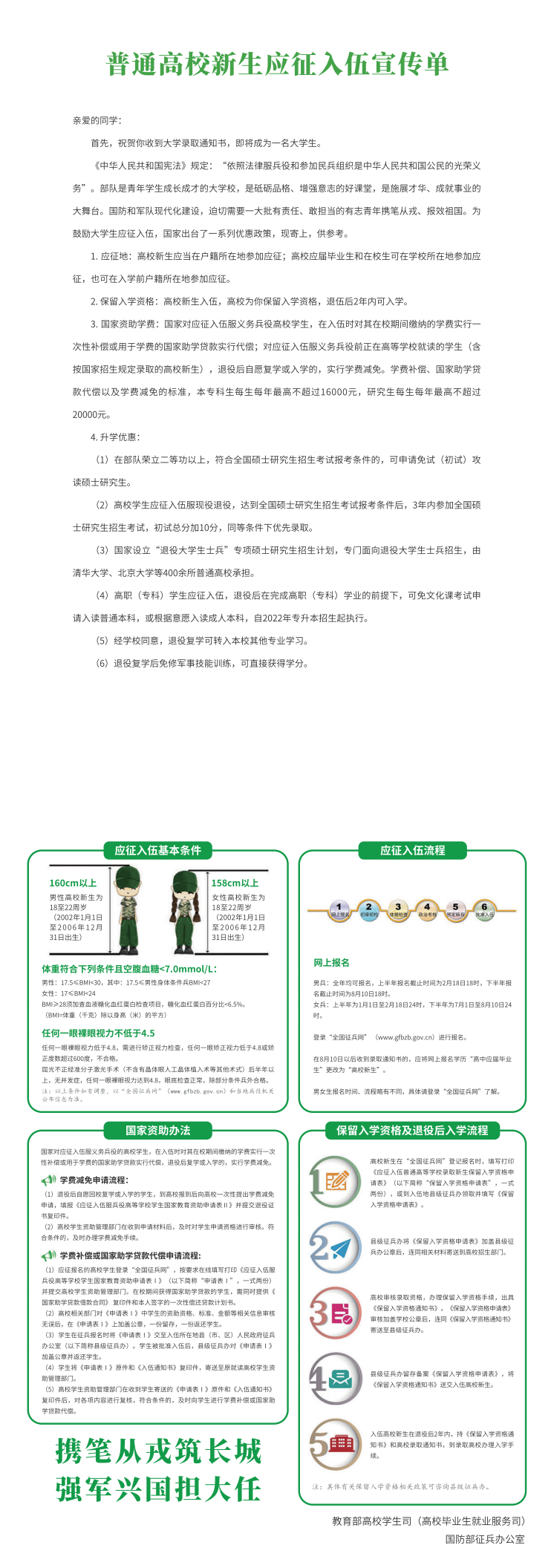 普通高校新生应征入伍宣传单