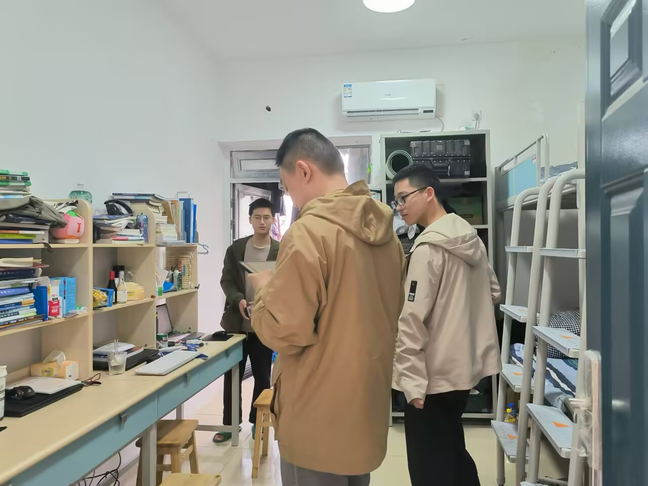 在走访过程中,老师们与员工面对面亲切交流,详细询问同学们的学习生活状态,耐心倾听同学们的需求与建议,积极协调解决员工的实际问题。同时,老师们细致检查了室内设施,观察宿舍是否存在防隐患等问题,确保同学们的住宿环境安全。此外,结合排查出的安全隐患,老师们现场开展了安全宣传教育,用真实的案例警示风险,普及消防疏散、用电安全、防盗防骗等知识,提醒员工们时刻绷紧安全弦,自觉遵守公寓管理规定,养成良好习惯,提高自我防范意识和应急处置能力,确保安全隐患从根源上得到解决。