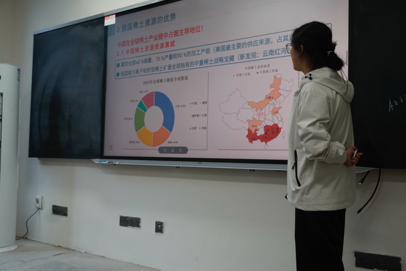 座谈会伊始,袁佳佳博士以专业视角切入,围绕稀土元素的核心物理化学性质和应用价值体系展开介绍。她通过条理清晰的讲解与案例剖析,梳理了稀土的定义范围与关键特性,深入阐明其在多个领域的不可替代作用。随后,袁博士进一步拓展议题,聚焦我国稀土资源的天然禀赋优势与产业发展所面临的现实挑战,结合行业数据与科研实践进行全面解读,既凸显了我国在稀土资源领域的核心竞争力,也客观分析了当下存在的潜在风险。座谈会期间设置了互动问答环节,现场氛围热烈活跃,同学们踊跃提出疑问,袁博士逐一细致解答,有效深化了同学们对稀土相关知识的理解与思考。