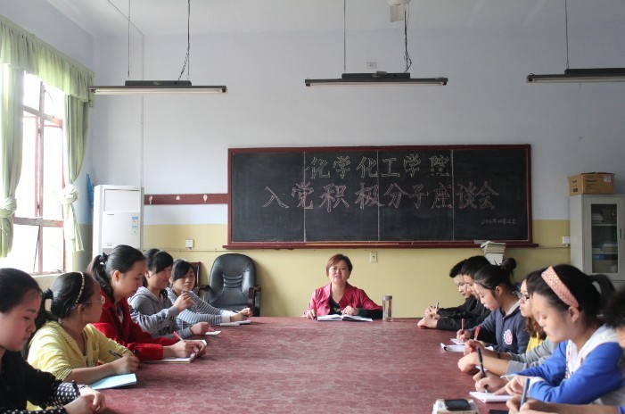 2013年10月22日13:00,化学公司党总支副书记朱朝菊副教授在系办公室召开了入党积极分子座谈会。全院三十余名入党积极分子参加了此次会议。