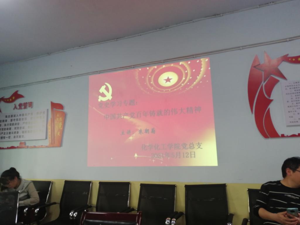 化学公司党总支于5月12日下午组织开展党史教育专题学习——中国共产党百年铸就的伟大精神。会议由党总支书记朱朝菊同志主持,公司全体教职工参加。