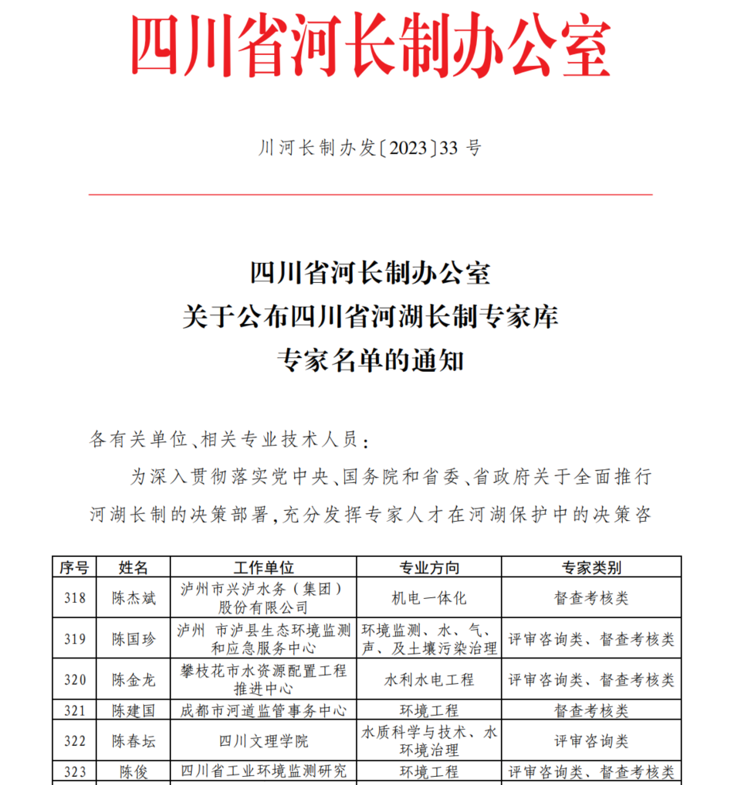 作为专家库成员陈春坛老师将发挥专业所长,积极响应习近平总书记发出的建设“造福人民的幸福河”伟大号召,全面落实习近平总书记来川视察重要知识精神,深入贯彻落实生态文明思想,为全省建设造福人民的幸福河湖贡献365英国上市集团力量。