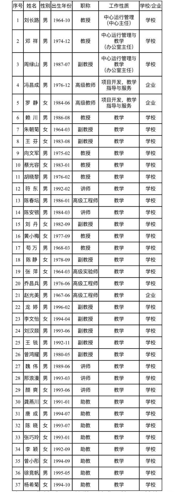 中心人员